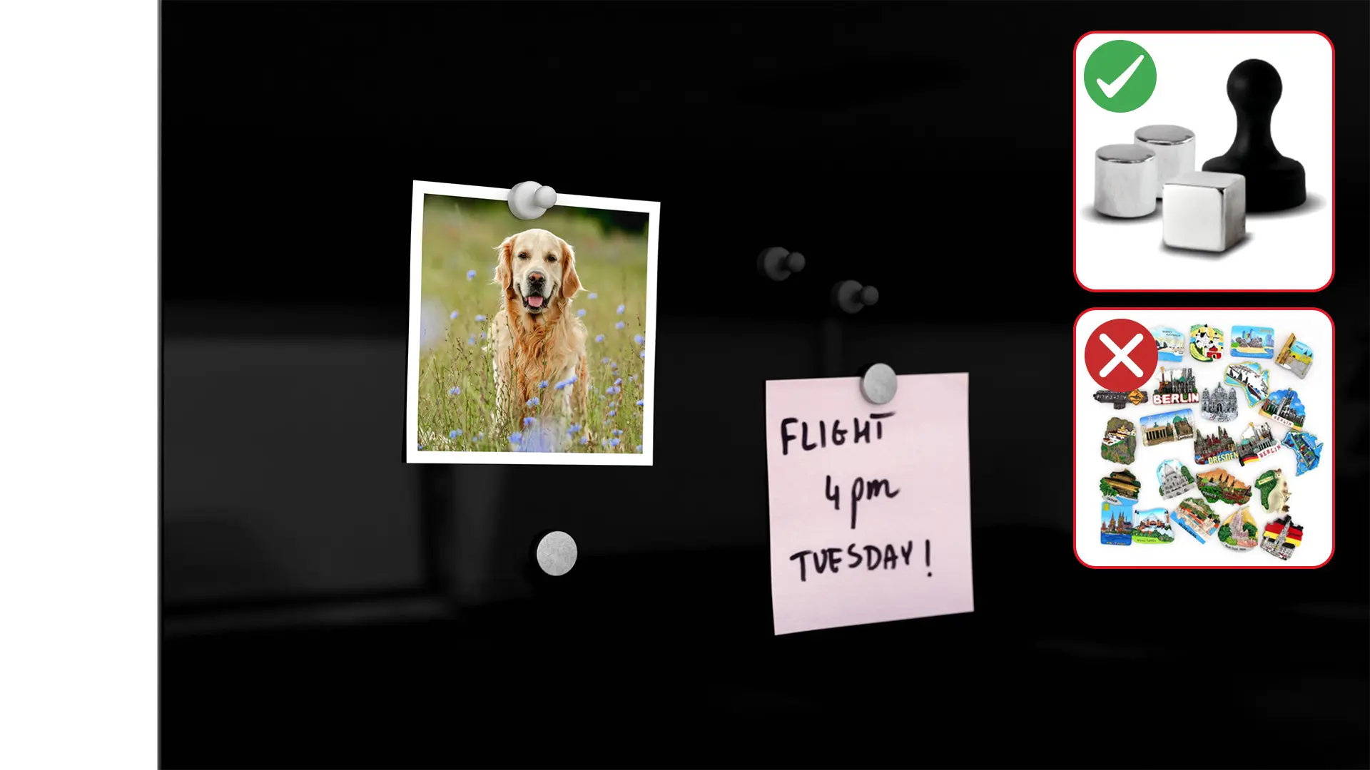 - SUCHOŚCIERALNA I MAGNETYCZNA — po tablicy można pisać markerami każdego rodzaju oraz przyczepiać do niej za pomocą magnesów neodymowych ulubione zdjęcia czy karteczki z ważnymi informacjami.