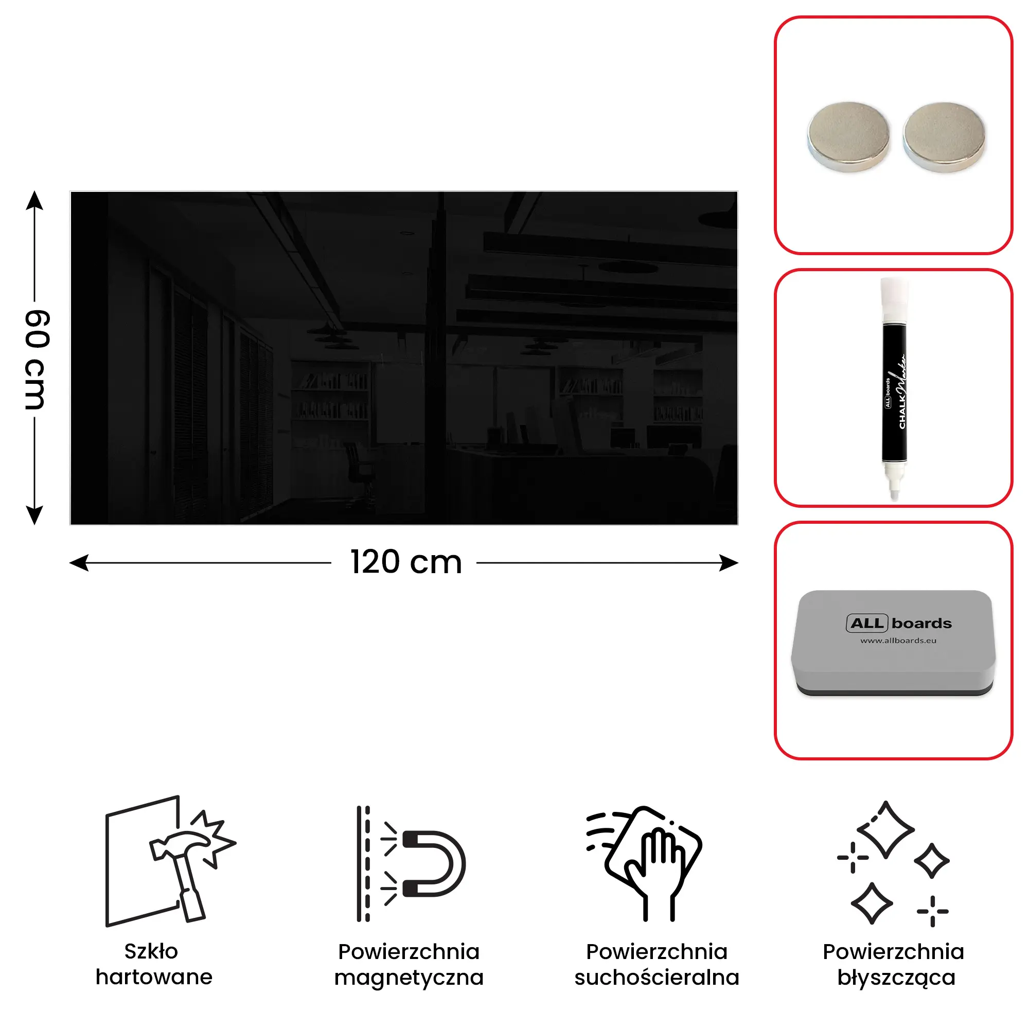 Szklana tablica magnetyczna 120x60 cm CZARNA + GRATIS
