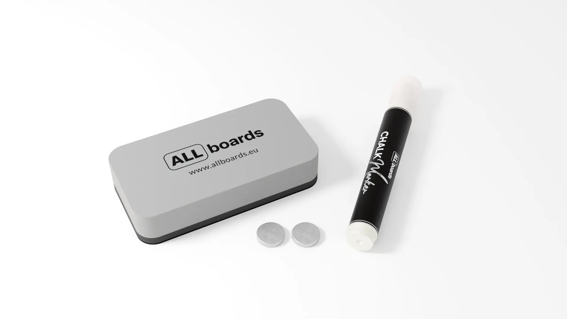 W zestawie z tablicą znajdują się: marker kredowy, gąbka magnetyczna oraz 2 magnesy neodymowe.
