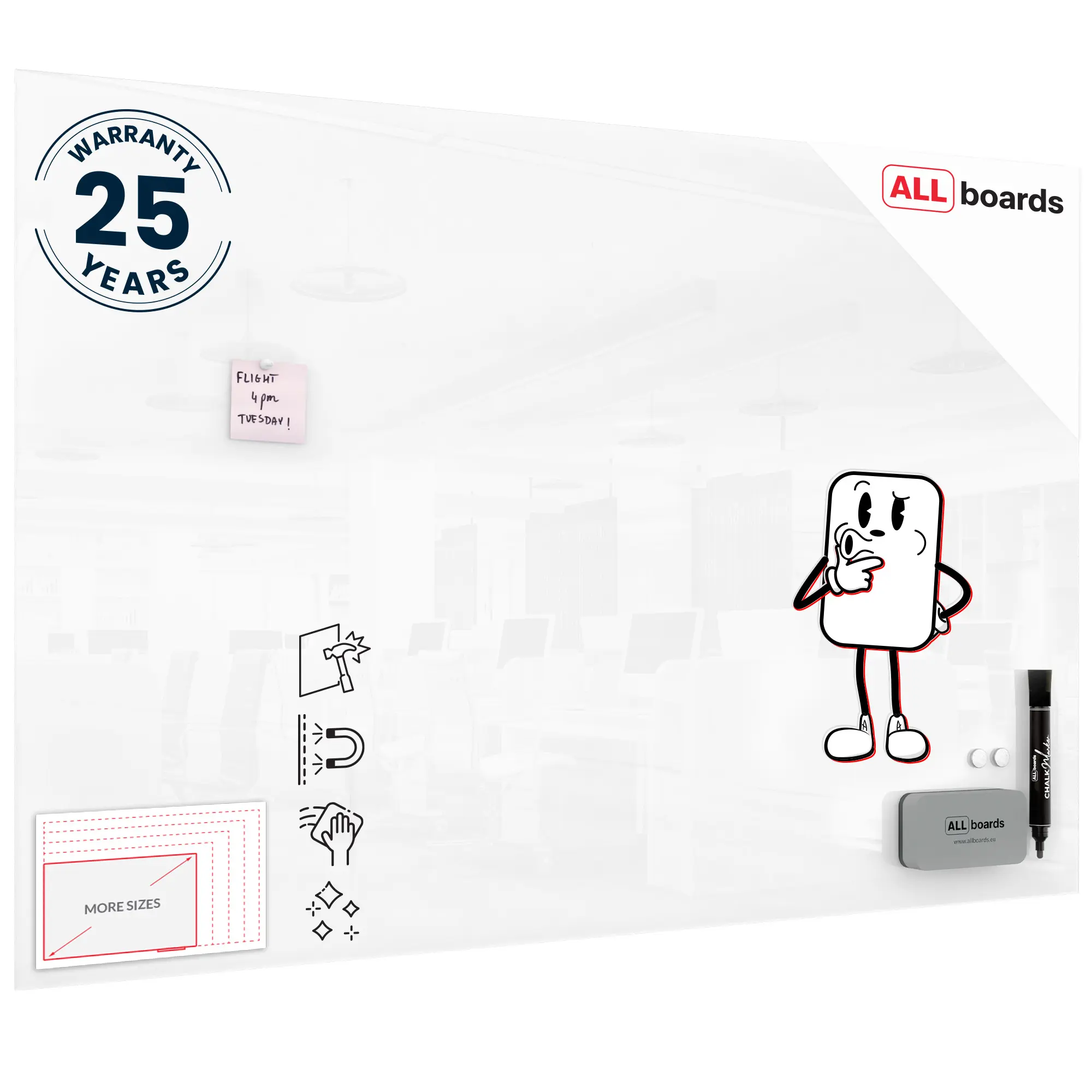 Szklana tablica magnetyczna 150x100 Premium SUPERWHITE + GRATIS
