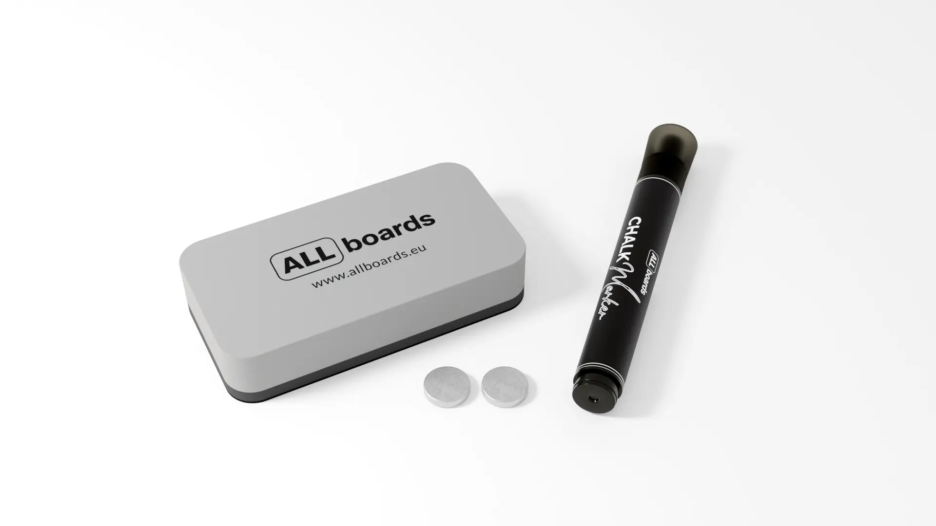 W zestawie z tablicą znajdują się: marker kredowy, gąbka magnetyczna oraz 2 magnesy neodymowe.