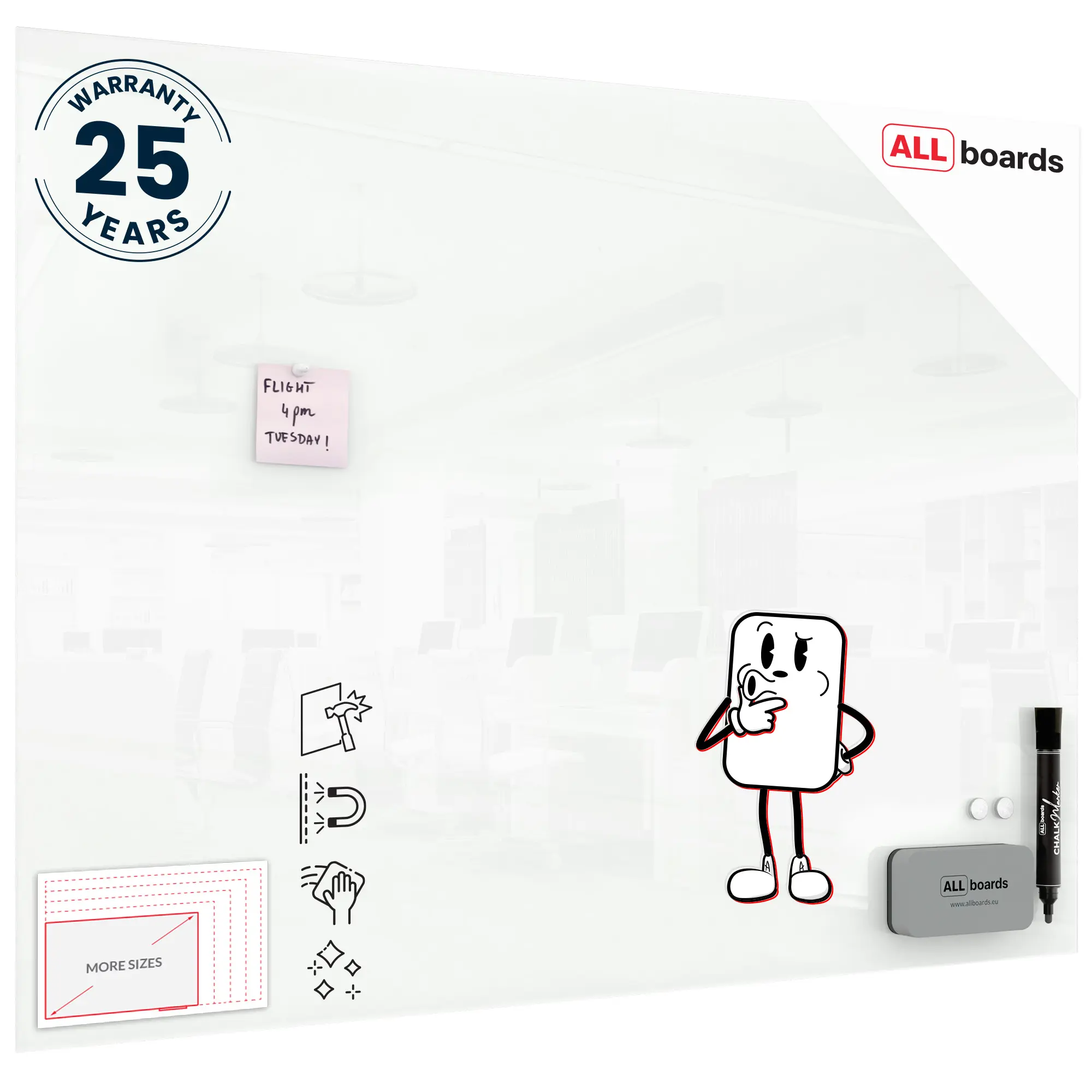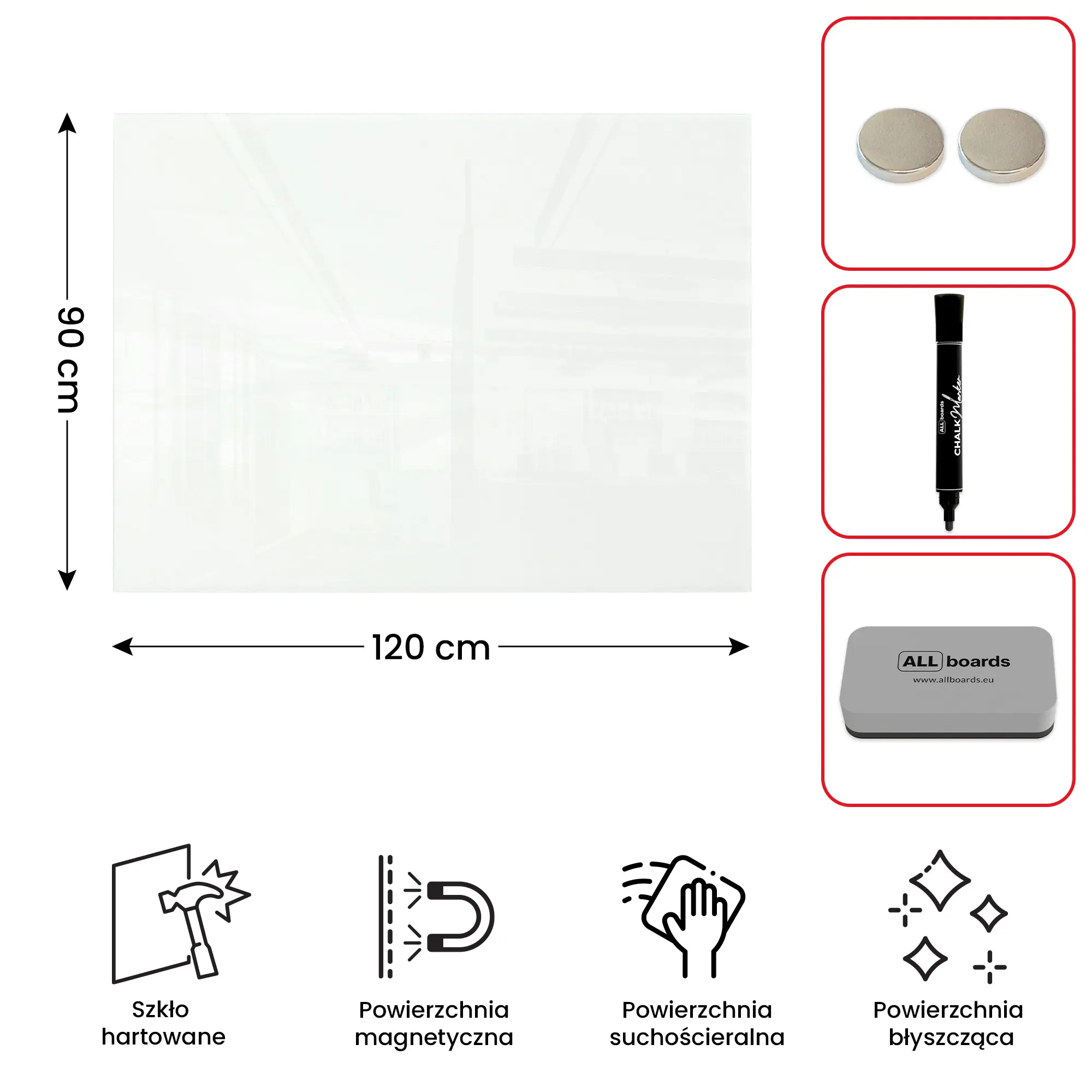 Szklana tablica magnetyczna biała 120x90 + GRATIS