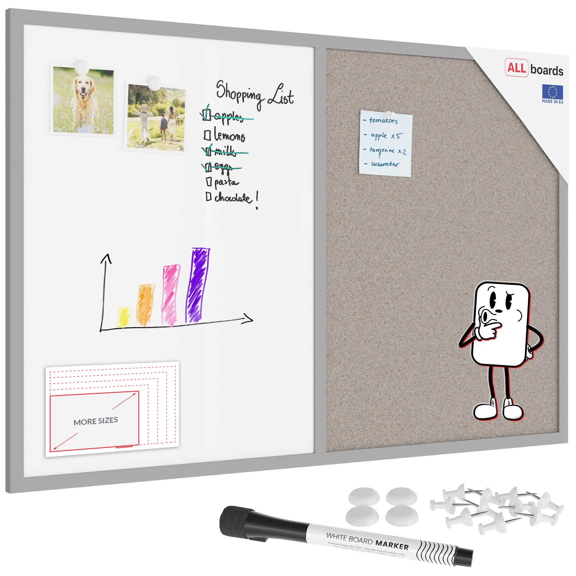 - Modna i praktyczna — kombinacyjna tablica jest nie tylko funkcjonalna, ale także elegancka. Znakomicie komponuje się z wystrojem mieszkania lub biura. Jest też świetnym pomysłem do pokoju dziecięcego.