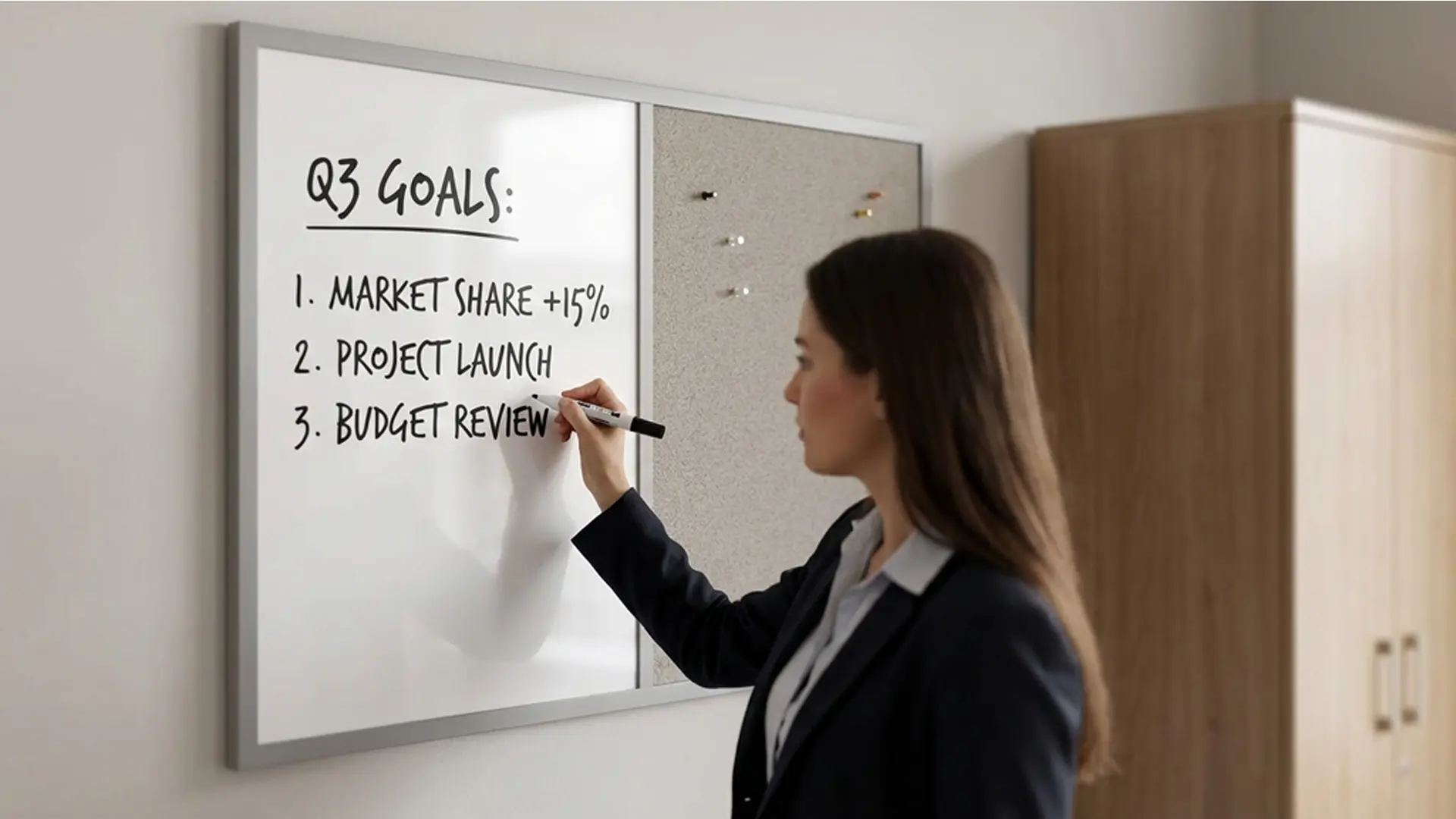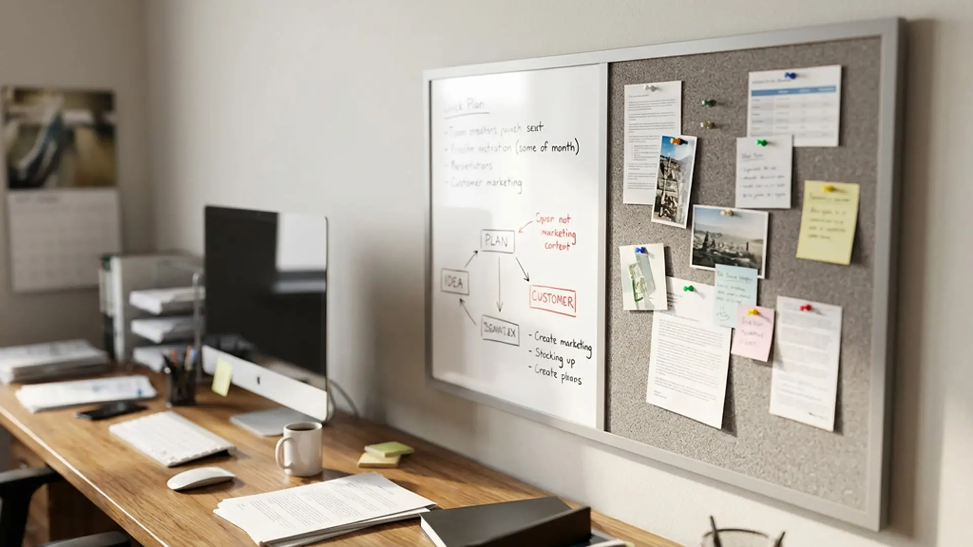 - Funkcjonalność i wygoda — dzięki różnym powierzchniom, tablica zyskuje funkcjonalność kilku tablic. Tablica korkowa pozwala przypinać pinezki lub igły. Tablica magnetyczna biała pozwala na pisanie po niej markerami oraz wykorzystywanie magnesów, tak by móc wyeksponować ważne informacje, notatki czy też zdjęcia.