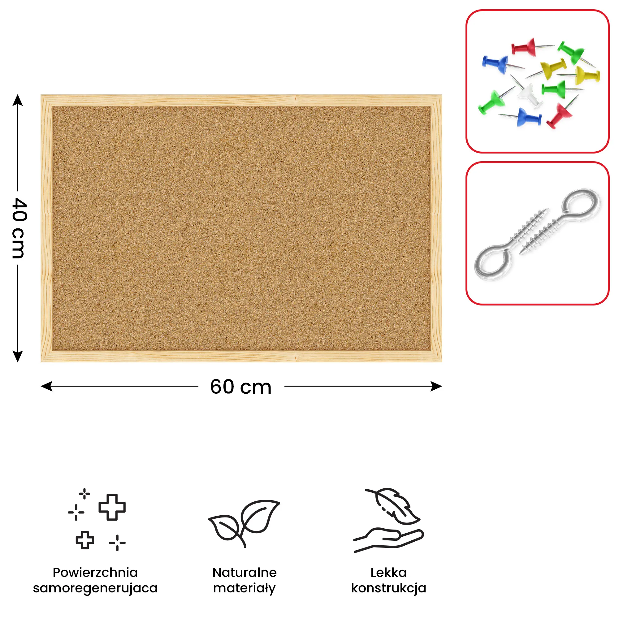 Tablica korkowa (rama drewniana) 60x40 cm + GRATIS